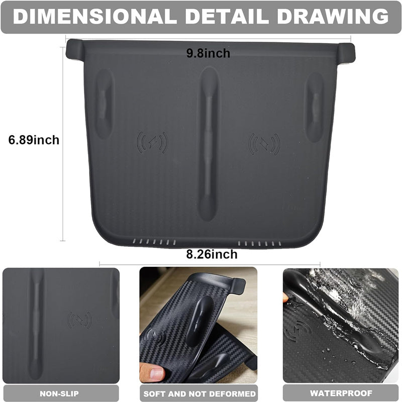 Easy to Clean: The velvet like lining in the interior in some of the Tesla attracts line and dirt like a strong magnet and is not easy to wipe down and clean. The Enovorld wireless charger silicone pad can protect your wireless charging panel from dust,water and oil, Keep your car a bit cleaner.a
