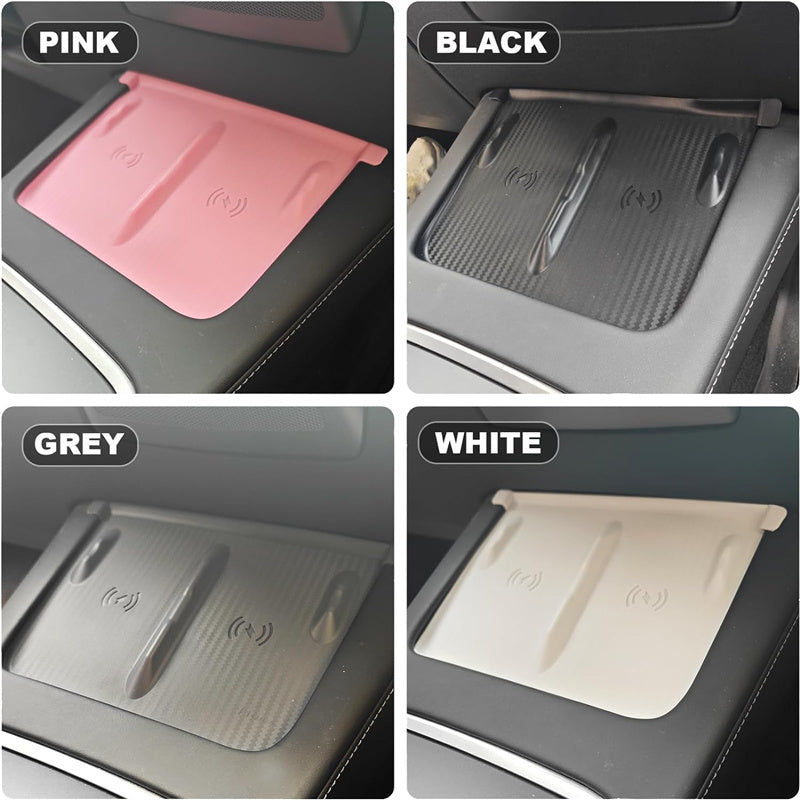 Custom Design: It fits perfectly for the 2023 2022 2021 Tesla model 3/Y central control wireless charging panel. 4 stunning colors to match your style - black, white, gray, and pink, giving your Tesla a modern and stylish look.