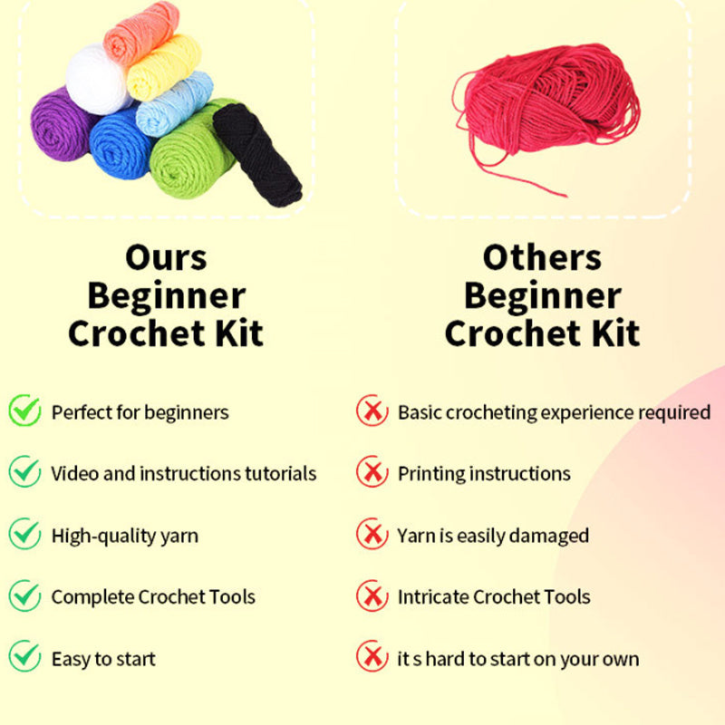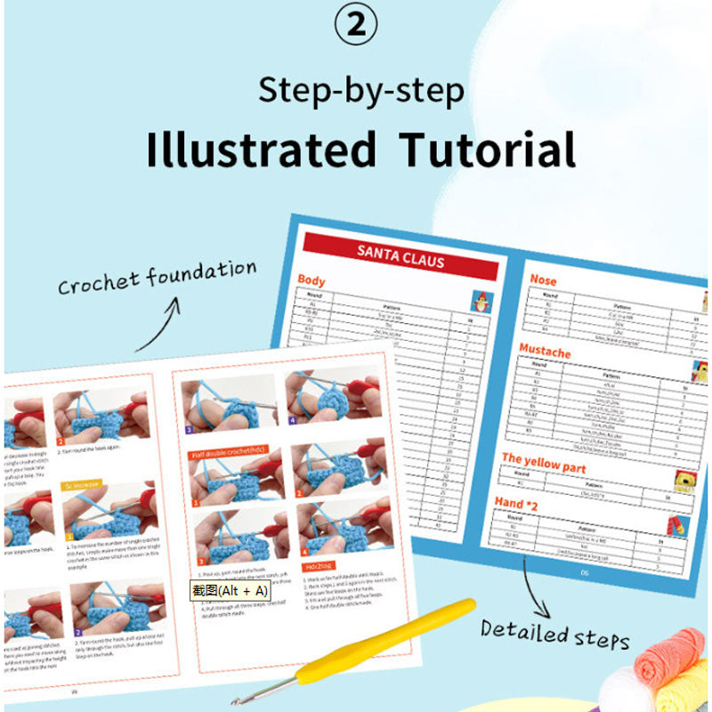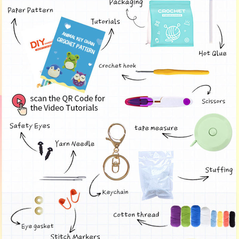 Crochet Kit for Beginners: Features high-definition full-color instructions and step-by-step video tutorials covering basic crochet stitches, making it easy for beginners to create three small animals.