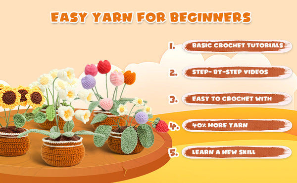 Cute Creations: Enjoy knitting adorable plants with our easy and fun kit. Use them as charming table or car ornaments, or as delightful children's toys, adding a touch of loveliness to any space.