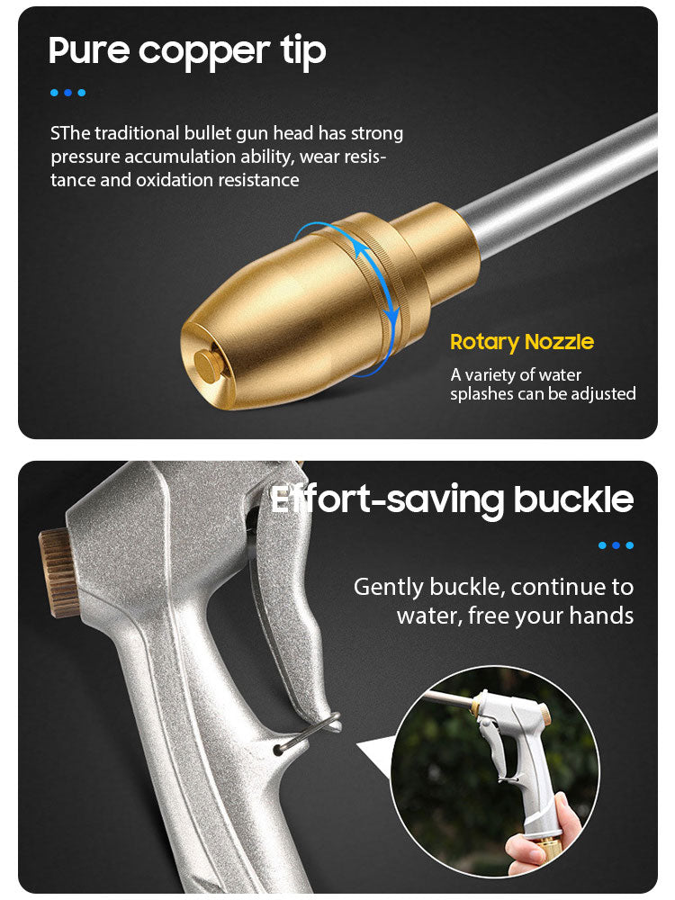 Lightweight and comfortable design fully consider for the delicate person, comfortable pistol grip, the front trigger makes it very easy to operate. It's perfect for home use: watering garden, lawn, flower beds, washing cars, pets, ground and so on.