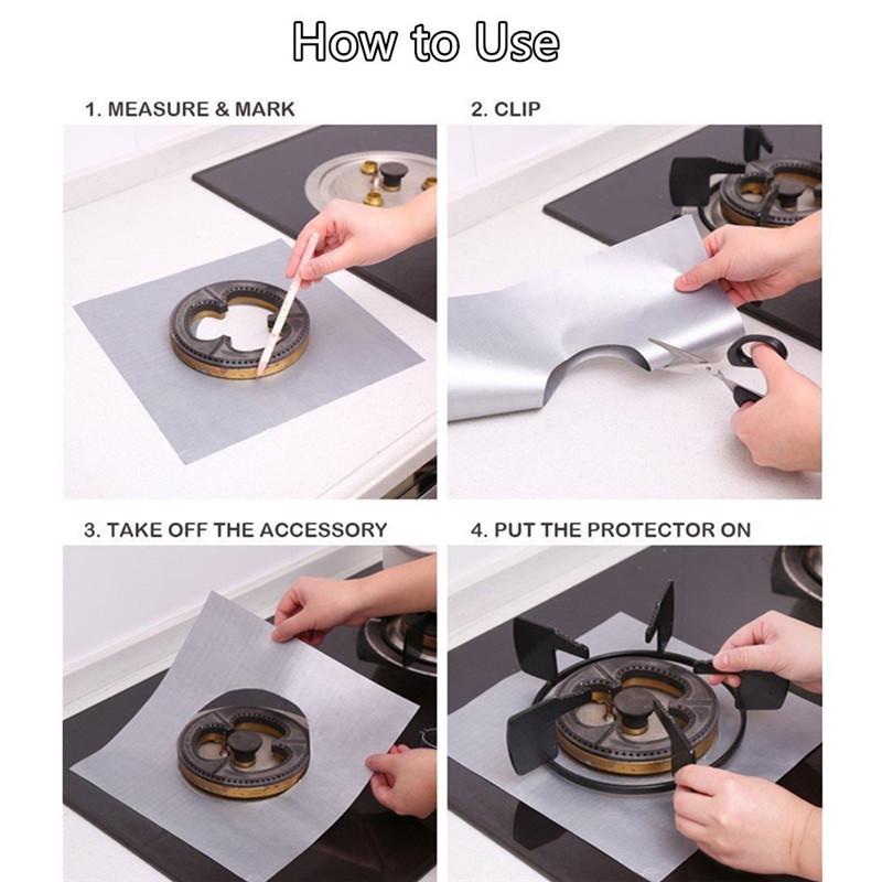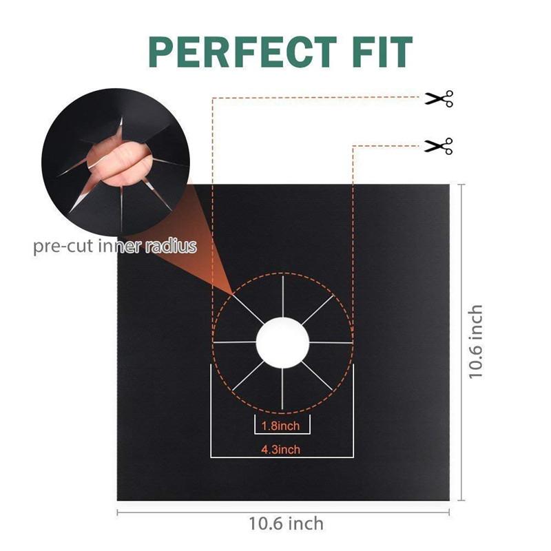 WARNING: Avoid direct contact with flames or heating elements to avoid possible injuries, or damaging of the product. High temperature Resist up to 300 degrees Fahrenheit. Protectors are not 100% fireproof. Trim pre-cut inner circle to fit the burner; trim outer edges if necessary. Make sure protector is kept at least 0.5 inch from the flame when set to max.