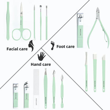 Professional Manicure and Pedicure Set- This Kit Contains 16 pieces nail and toenail tools for three functions, including hand care,facial care, and foot care which can meet all of you needs.