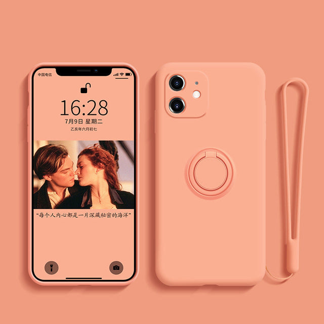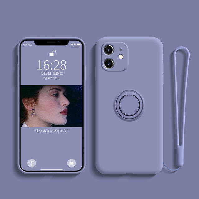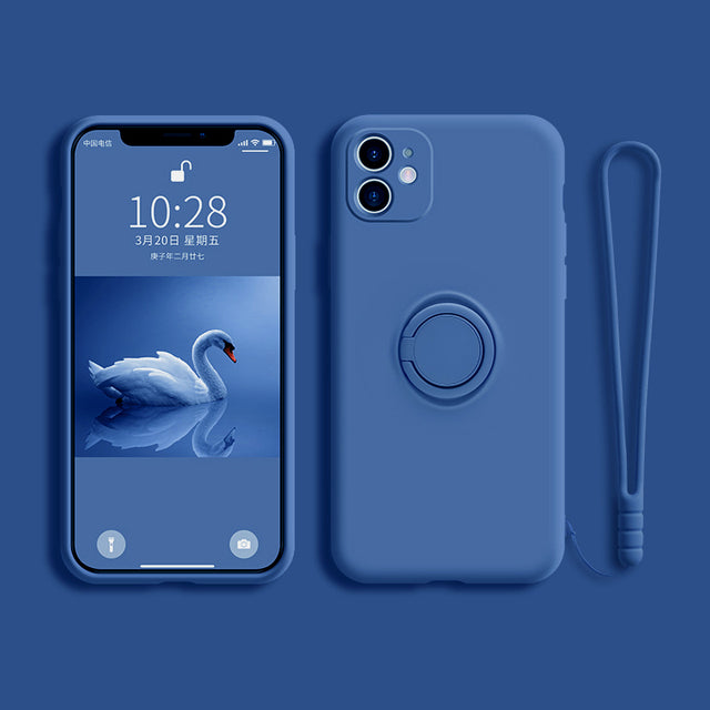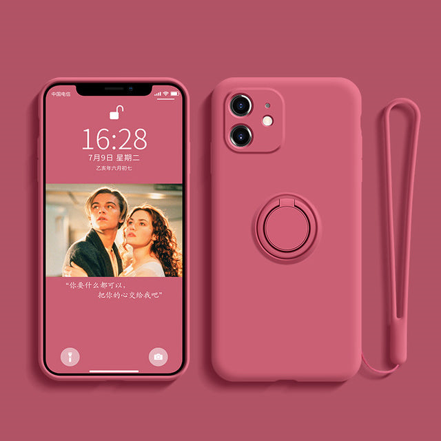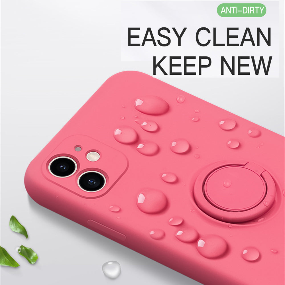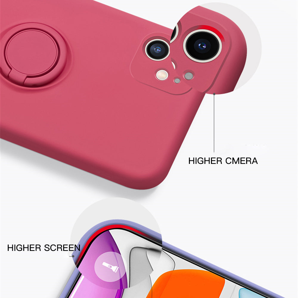 3 in 1 Soft Liquid Silicone Case Magnetic Ring Holder for iPhone Series