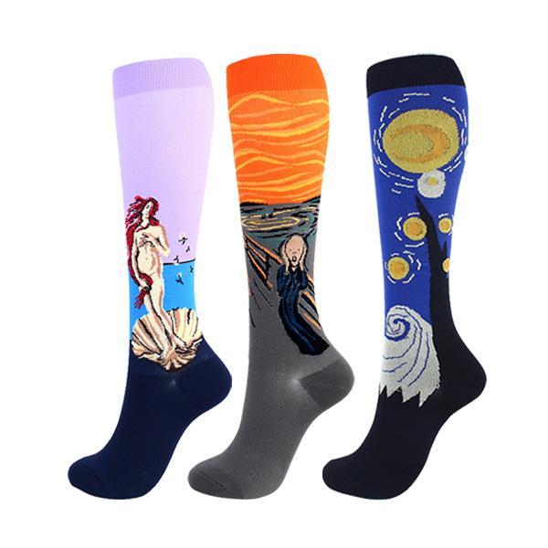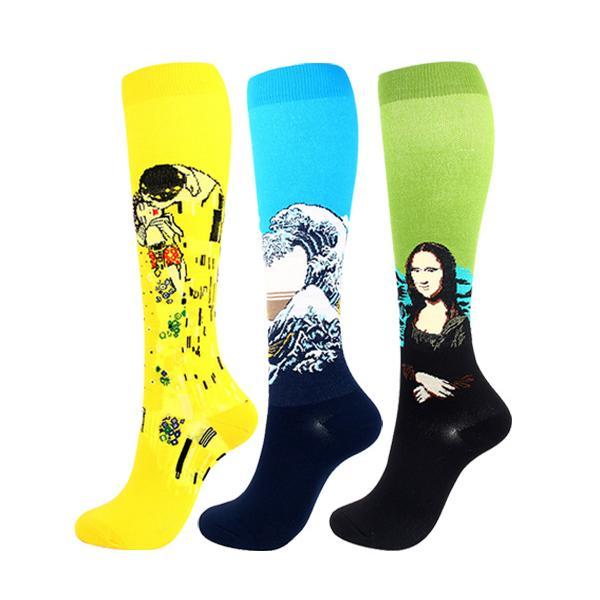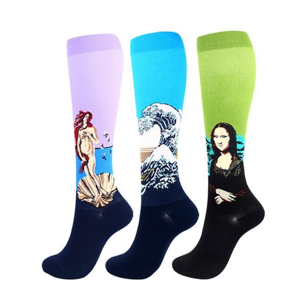 3 Pairs Artwork Painting Socks 20-30 mmHg Compression Stockings