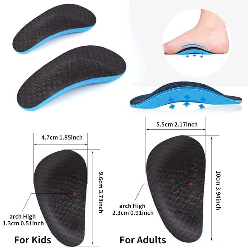 Function: our nylon flat arch support half pad is design to support arch, relieve arch pain,keep balanced, improve walking posture, for those who have arch pain, heel pain, ankle pain,plantar fasciitis, high arch and over pronation.
