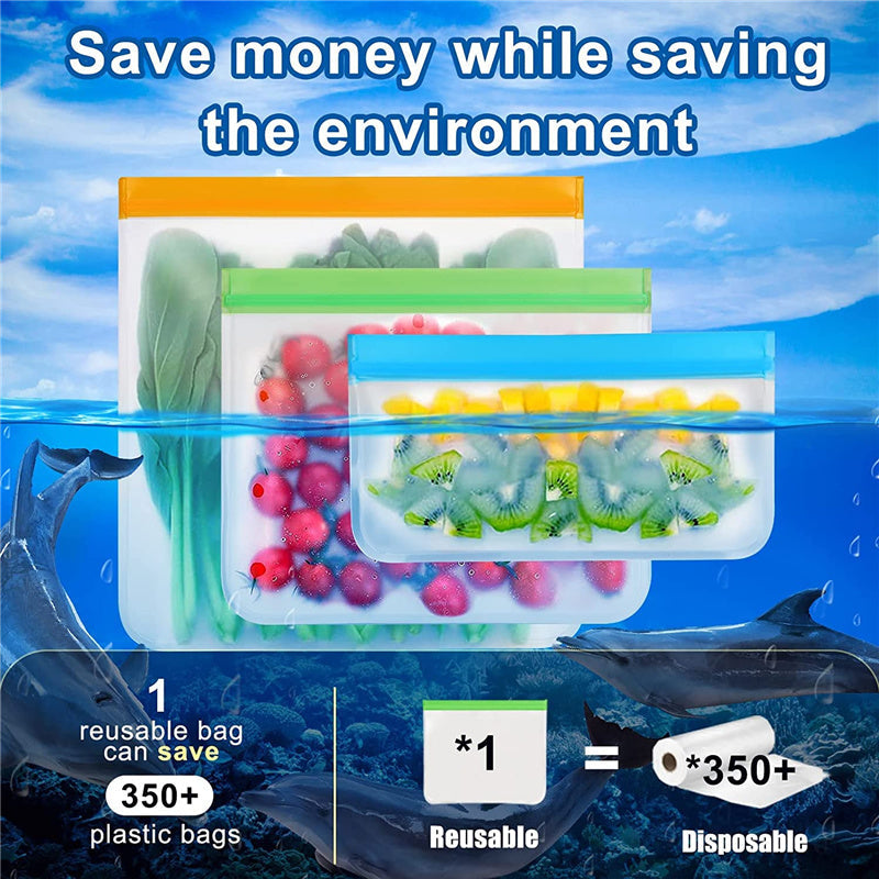 Reusable & Eco-Friendly: These food storage bags are crafted from PEVA material, making them silicone and plastic-free. Washable and reusable, each bag can replace up to 350 disposable plastic bags, helping you save money while reducing plastic waste and protecting the environment.