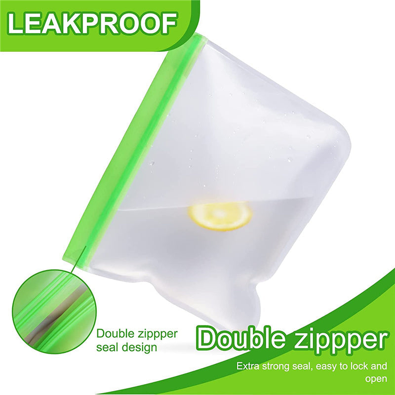 Freezer Safe: Designed with a double zipper closure system, these extra-thick bags provide an airtight seal, keeping your food fresh and safe from freezer burn. They’re leak-proof and easy to open and close, ensuring a secure and reliable storage option. (Note: Not microwave, dishwasher, or hot-food safe. Hand wash only.)