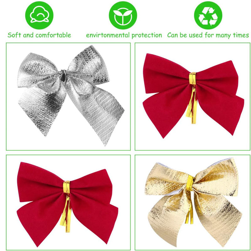 Each Christmas bow is paired with twist ties, easy to attach it to Christmas trees, quick and convenient to use these decorative bows to dress up your festivals, will add more Christmas atmosphere.