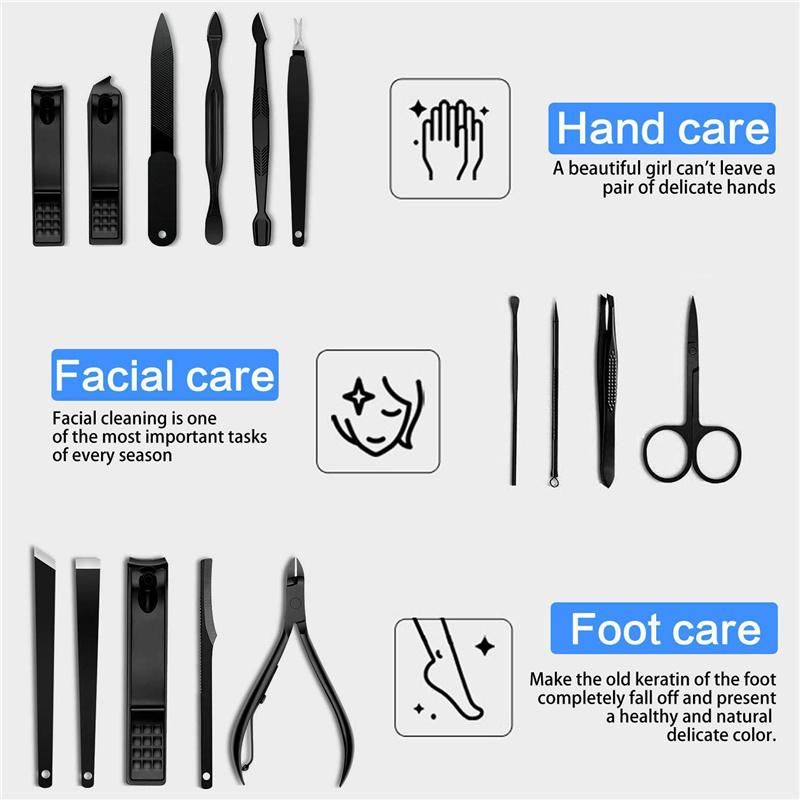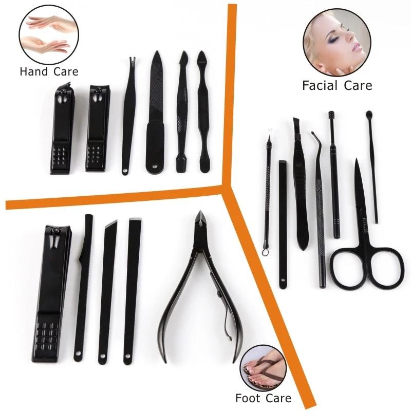 The Best Manicure Set: Professional manicure tool set 15 in 1. All tools are made of high-quality stainless steel, sharp and durable, portable, comfortable to use and never rust to protect your health. black manicure set nail clippers set fingernail cutters nail scissors.