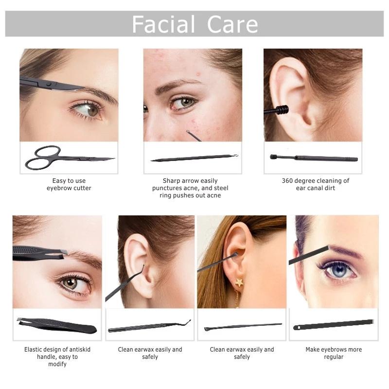 Multi-Functional Nail Kit: These professional Manicure Kit Contains 15 pieces in for three functions including hand care(for fingernail part), facial care(for facial and brow trim part), and foot care (for Toenails part). The manicure pedicure set meet all you need. nail clippers set fingernail black manicure set cutters nail scissors.