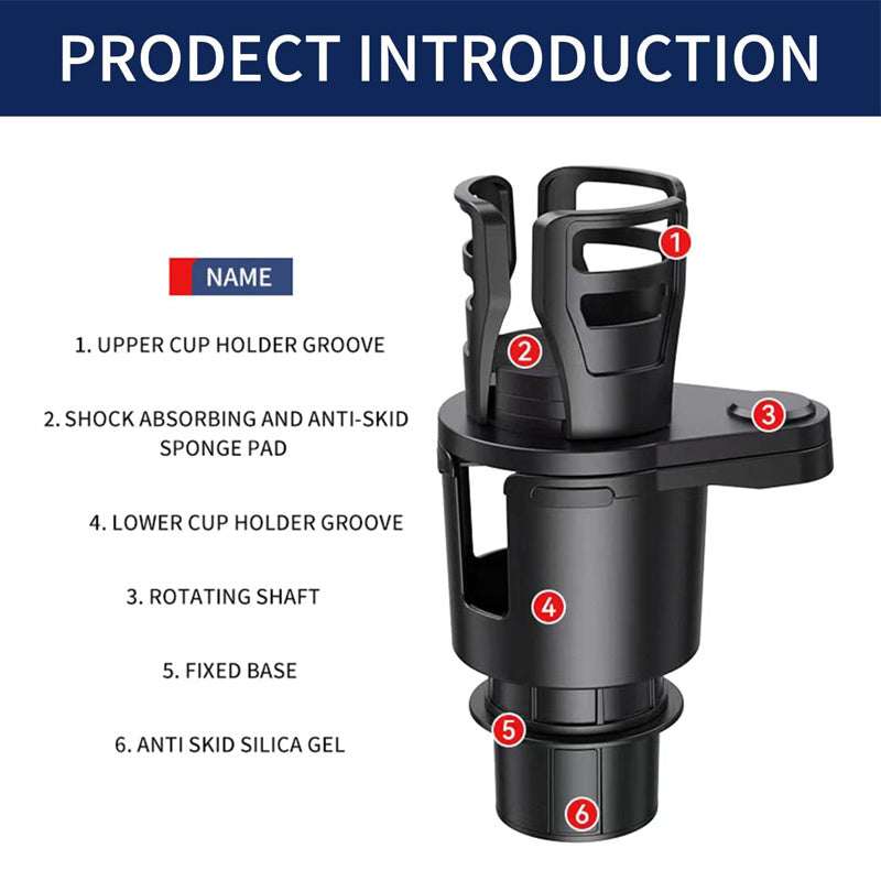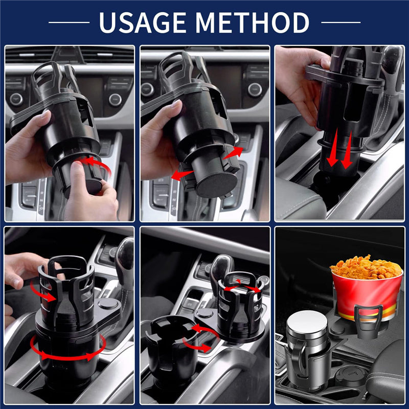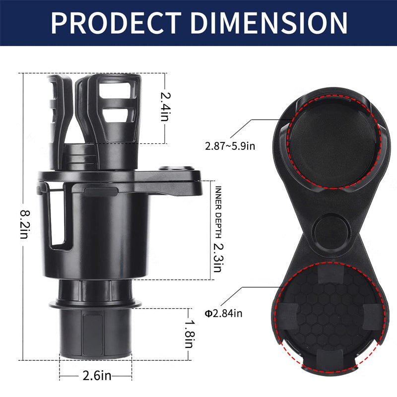 Multifunctional Design: The car cup holder can be divided into 2 cup holders by rotating the upper holder. The upper cup holder expander adapter can be extended to fit larger water cups, thermos, cell phones, food, and more.