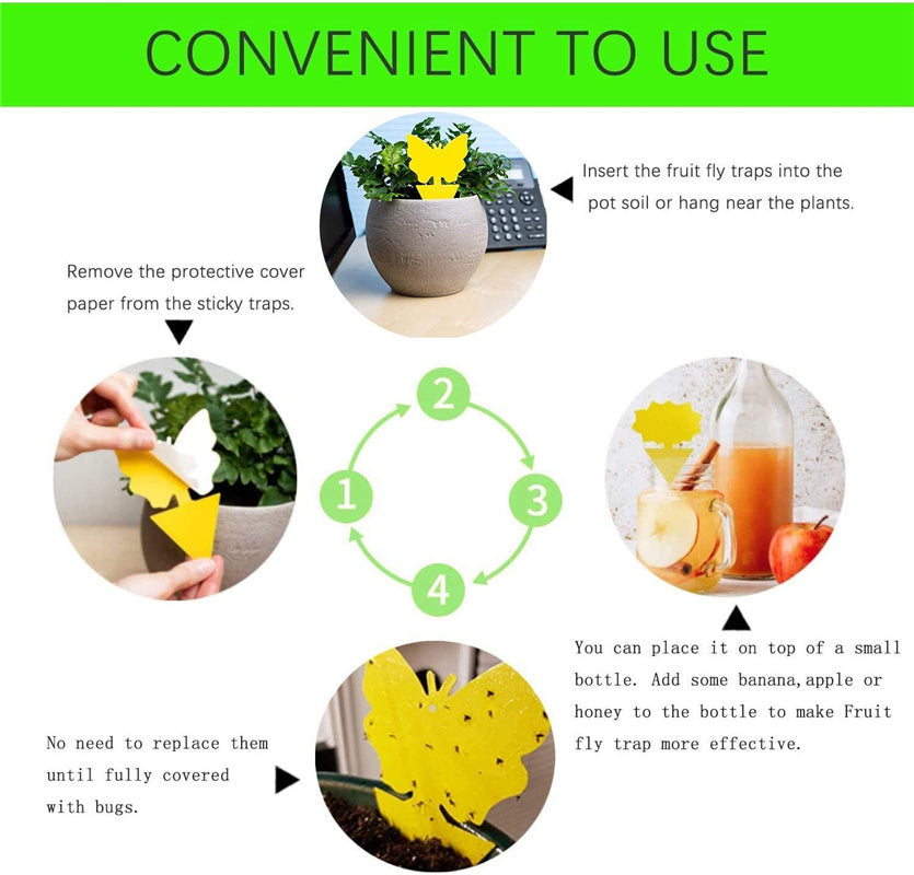Yellow sticky trap: bright color attract flying insects, and high quality glue keeps them from escaping.Specially designed for flying plant pests. Great for outdoor or indoor plant, especially potted plants.