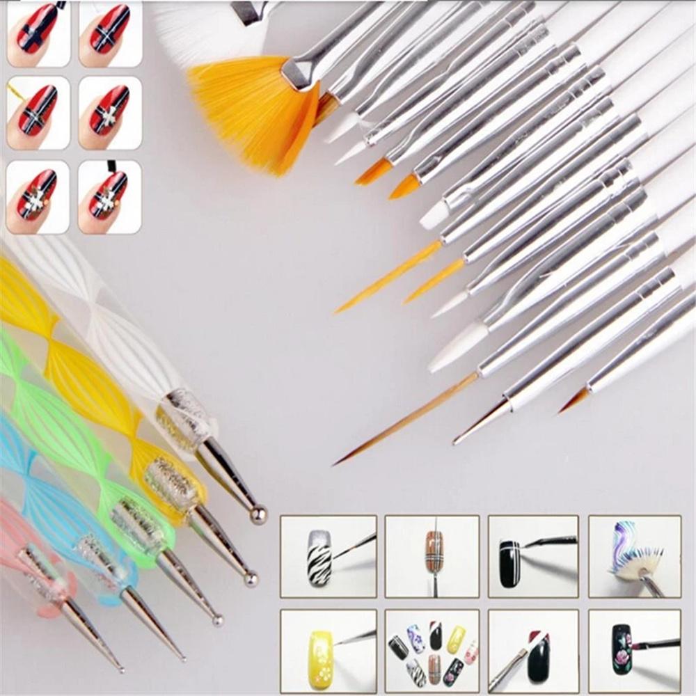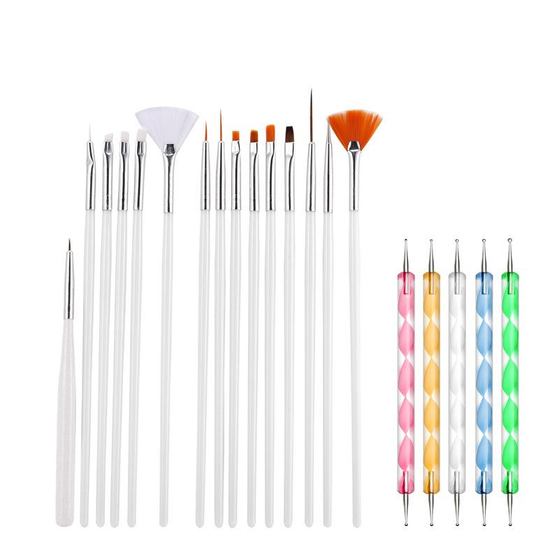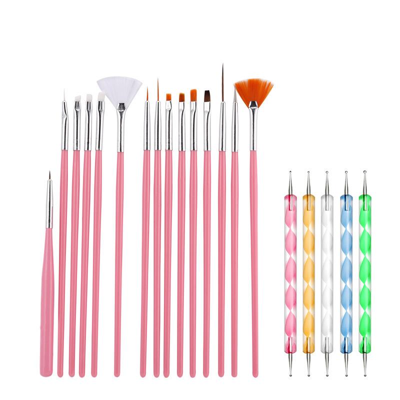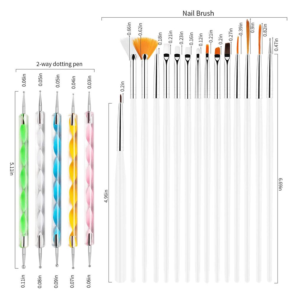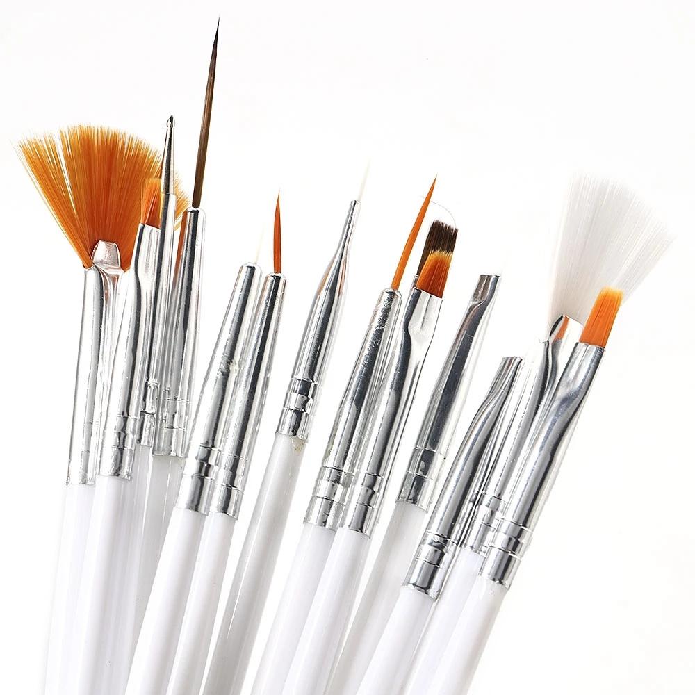 Set of 15pcs nail art design painting drawing brushes including dotting tool, angle brush, fan brush, sanding brush, flat brush, painting brush, striping brush and drawing brush for drawing fine nail art. Suitable for professional use and home useÂ