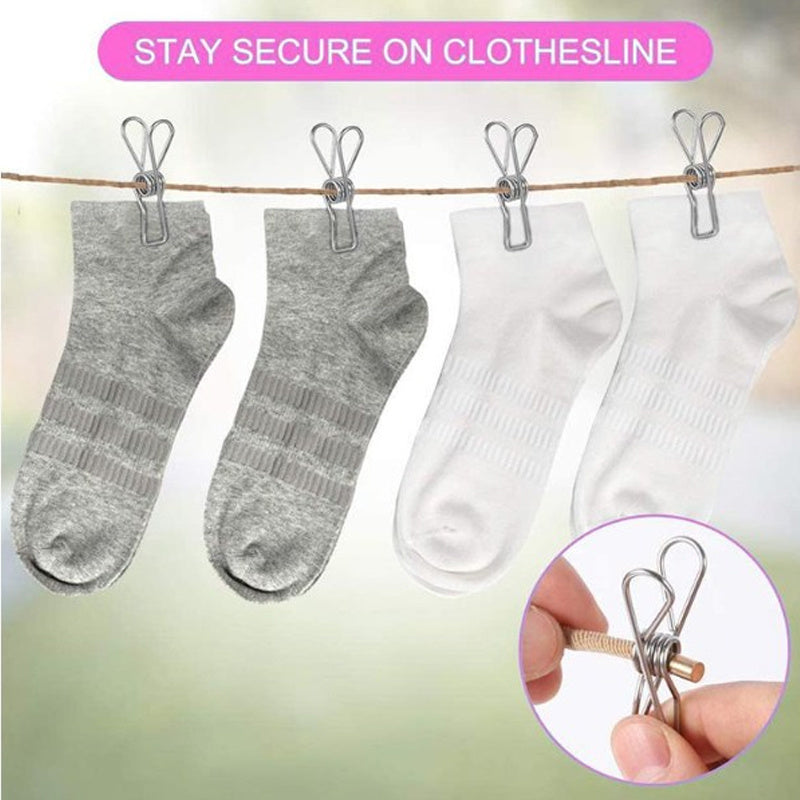 20pcs stainless steel laundry clips for secure and reliable clothes hanging.