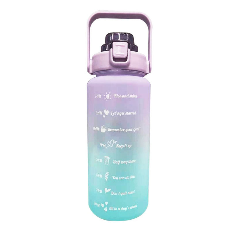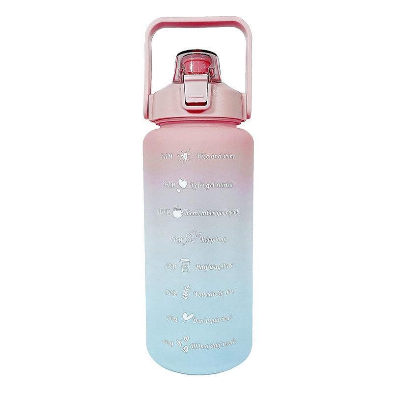 FUNCTIONAL DESIGN: With a screw cap with grip, an easy-filled mouth opening, a carry handle and a motivational time markings.Its transparent with scale,good to make a plan to drink water every day.