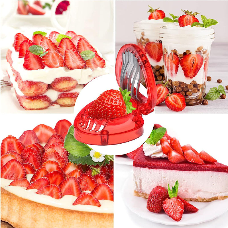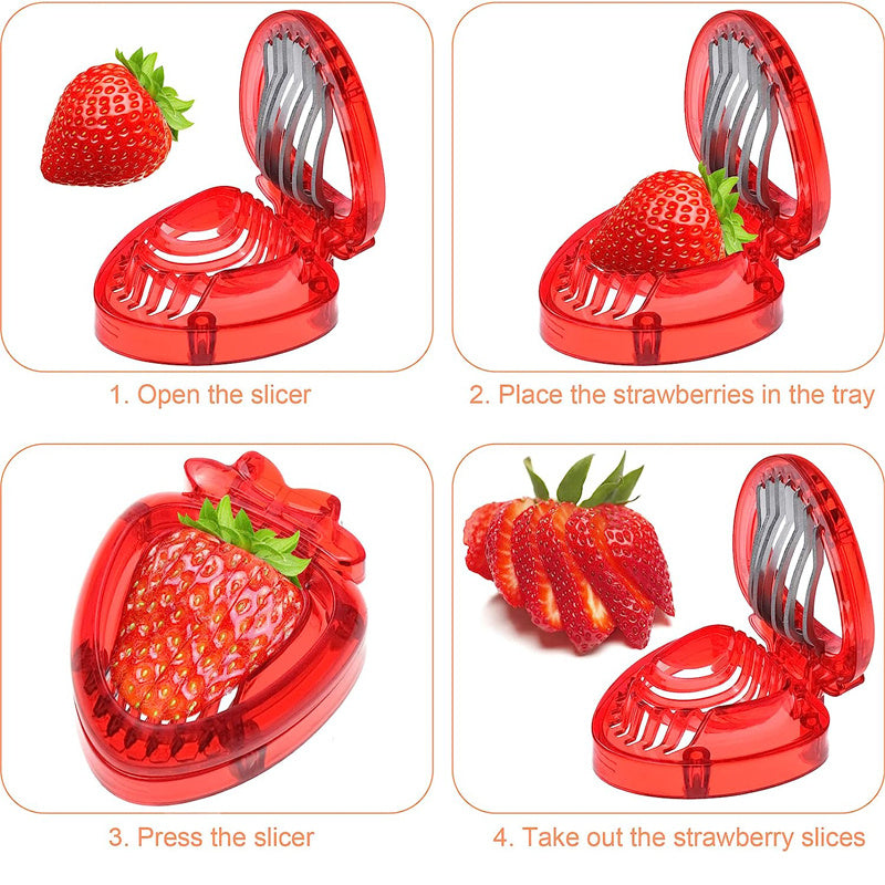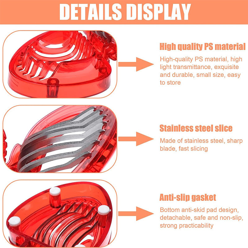 Egg Slicer Heavy Duty: This strawberry shaped fruit chopper is made of high-quality ABS plastic and stainless steel wires, durable, not easy to rust, salad chopper can make even-sized slices that look delicate, facilitating food preparation process. This product can also be used as a Mother's Day gift.