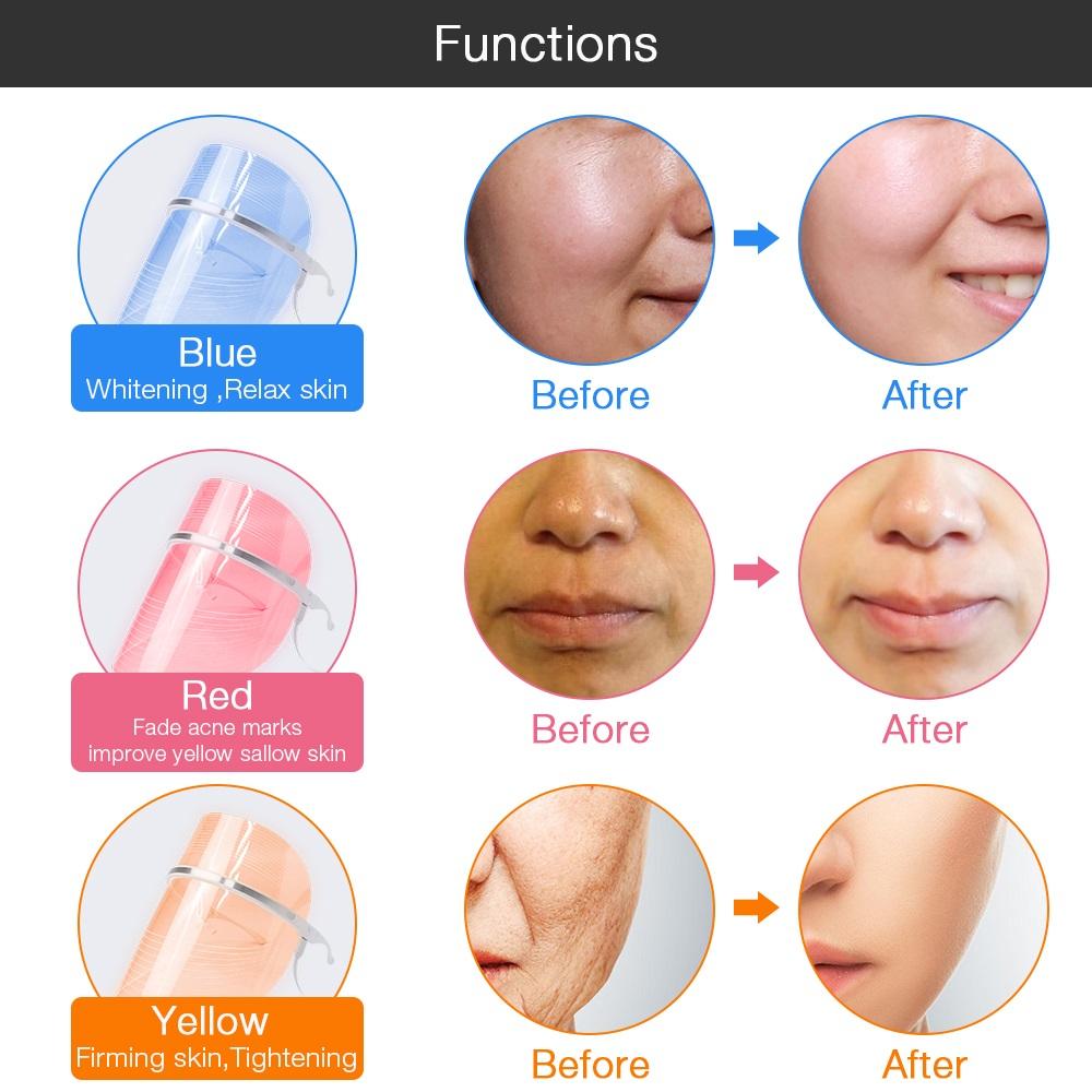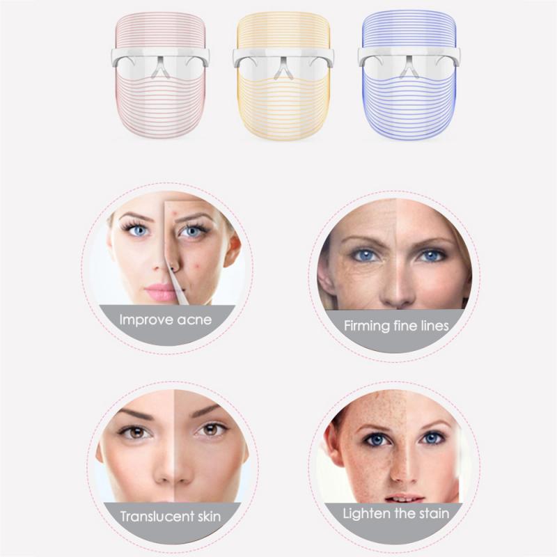 3 color Light Therapy Facial Mask Anti Acne Wrinkle Facial Machine Device Skin Rejuvenation Moisturizing LED Mask Beauty