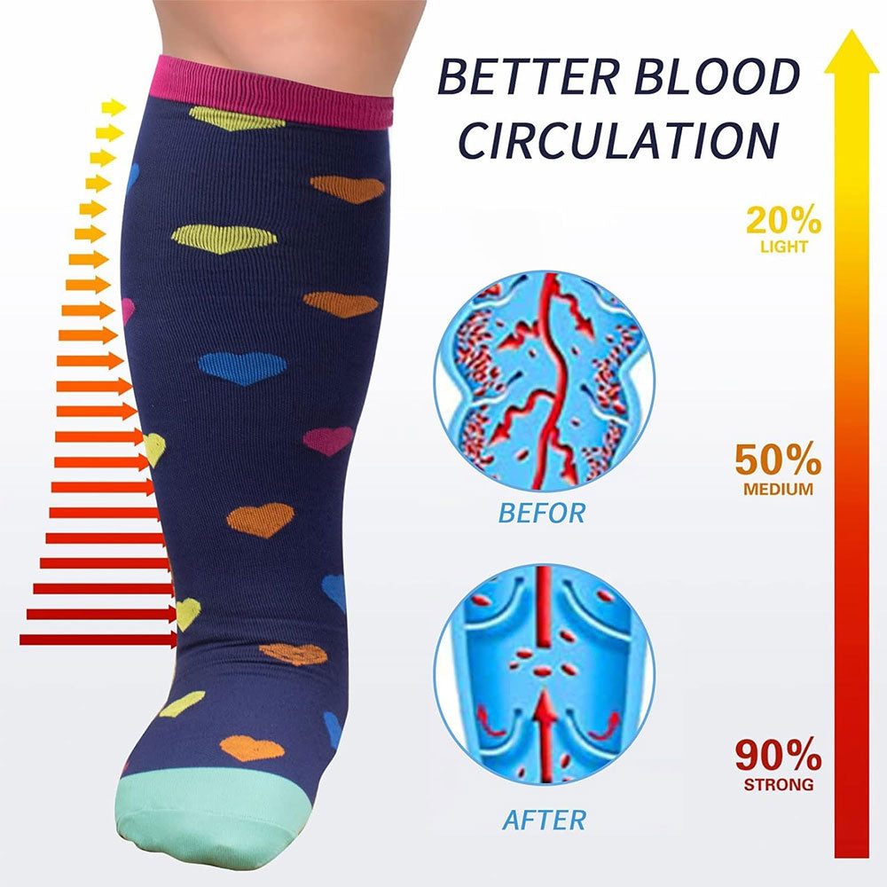 Our knee-high compression socks have nice and snuggly support without being too tight and enhance blood circulation effectively.