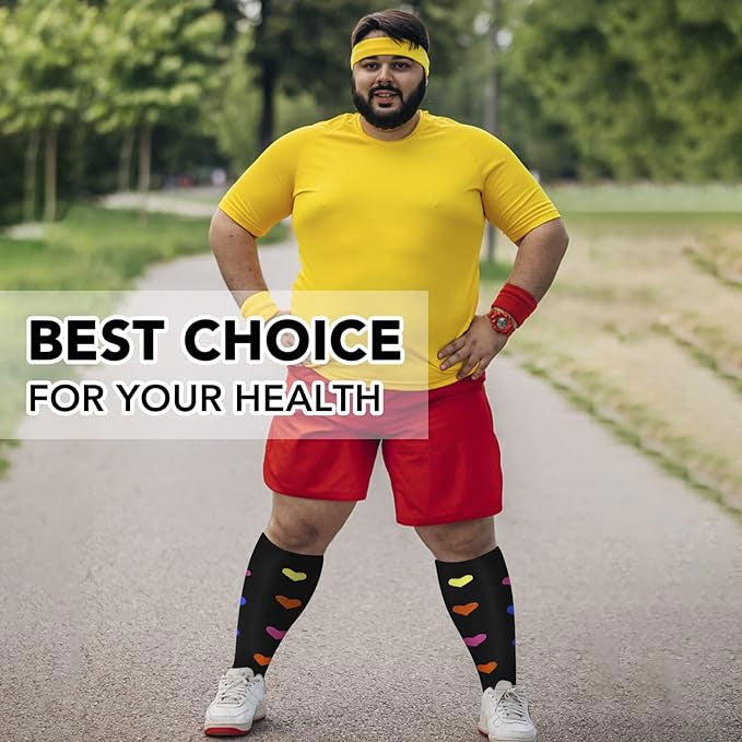 More comfortable than normal size compression socks, these big and tall calf compression socks bring you strong leg support and long lasting graduated compression, as well as ultra comfortable wear of lightweight and breathable. These large compression socks keep your muscles warm and support all day.