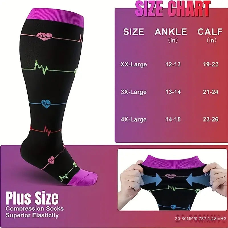 WIDE CALF DESIGN- These comfortable wide calf compression socks is ready and perfect for men & women, who wears in exlarge or plus size, that are supportive for plus size calves.