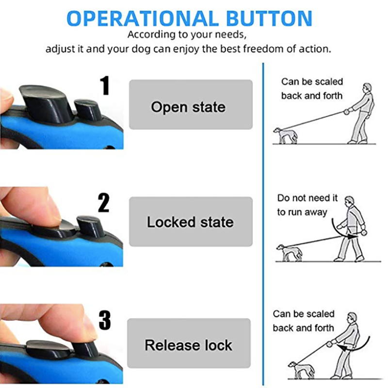 Retractable style design, the leash can auto stretch out and draw back.