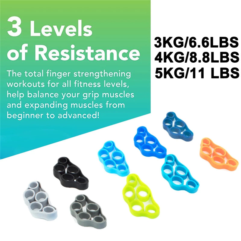 The strength trainer is ergonomically designed and fits well for all hand sizes, which perfect for men, women, seniors and teens. It is great to fit into your gym bag or handbag. You can get repetitions in while commuting, at the office or anywhere! These finger stretchers with 3 levels resistance (3kg/6.6lb 4kg/8.8lb 5kg/11lb),use different levels based on force requirement.