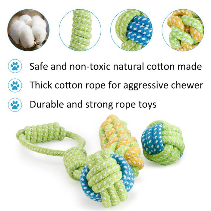 The chew toys are made of tight cotton ropes which are durable and absolutely safe for your dogs, smooth surface will do no harm to teeth.