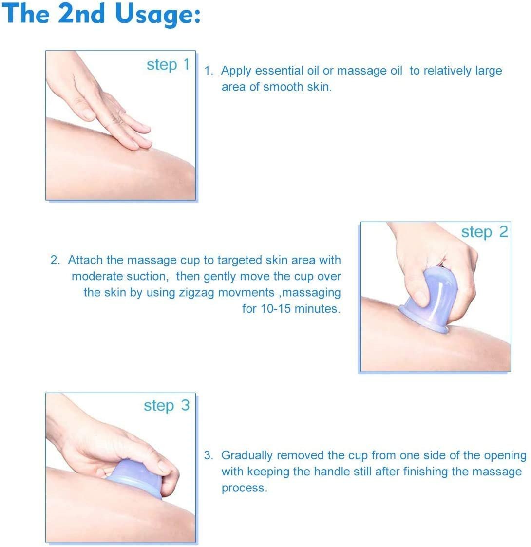 Easy to use: Detailed instruction card include. With this massage cups, you can stay at home and enjoy the professional body therapy everyday. Simply 3 massage steps to follow everyday, it will sure to help increase skin’s firmness and you will have a better skin and healthier life.