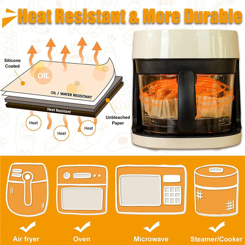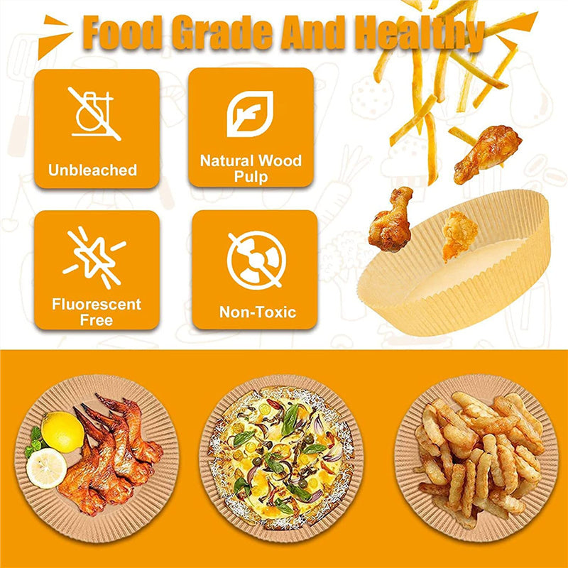 Keep Your Air Fryer Clean: These disposable paper liners can effectively keep food residue away from fryer and make it as clean as unused, saving time and effort. These paper liners are must have if you hate cleaning after baking.