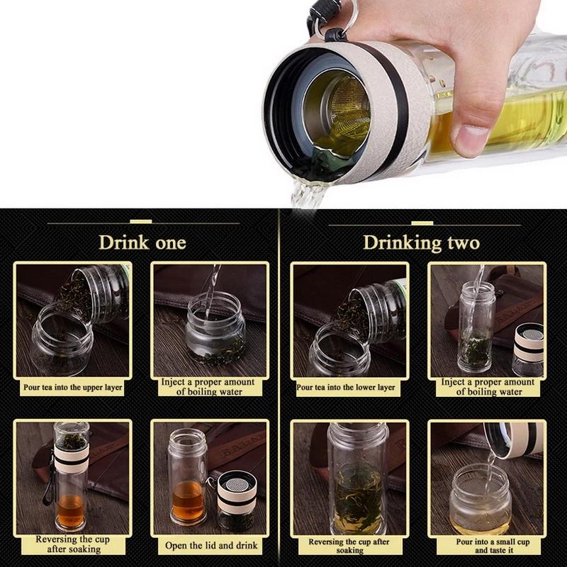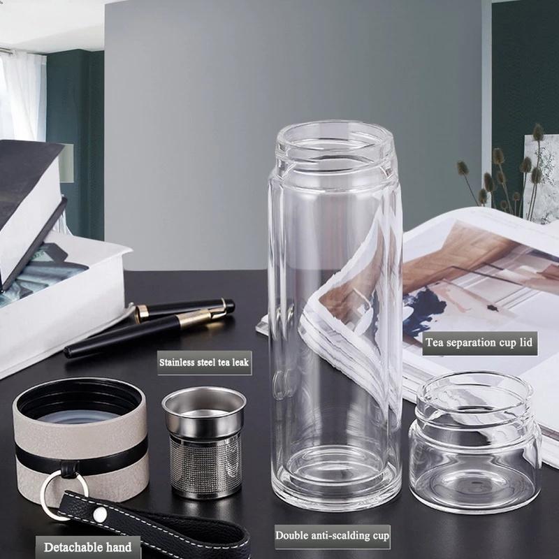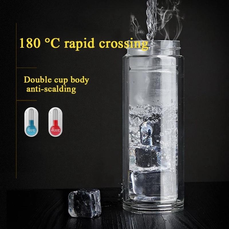 Double wall design: Heat resistant double wall glass bottle, it's safe for both boiling and ice water, tea, juice, coffee and other beverage.