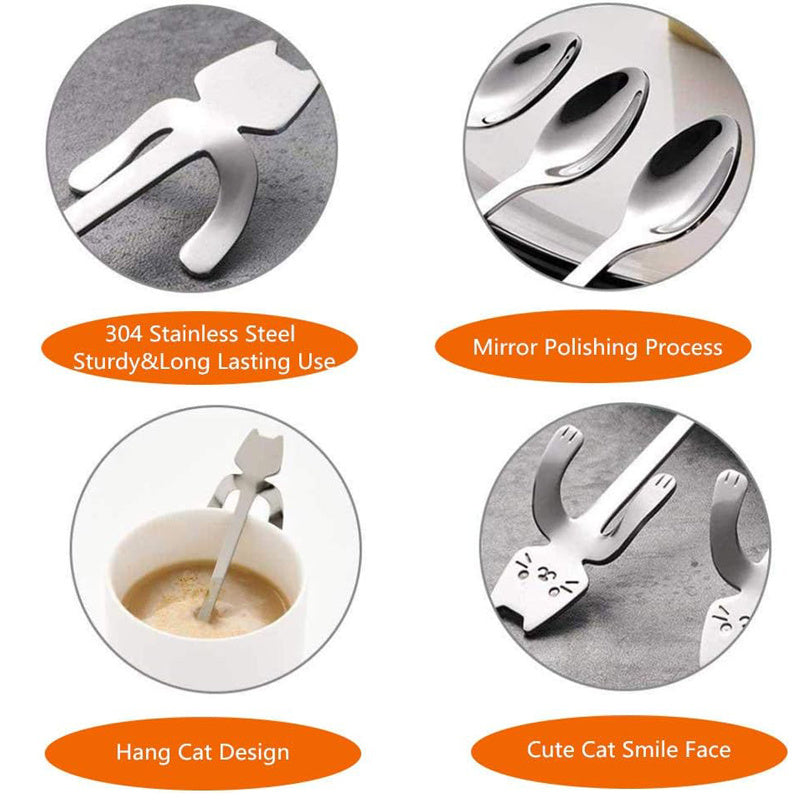 Stylish Design for Idea Gift Choice: This coffee spoon designed in a cute kitty shape ,just like a cat is drowsy in the cup border ,two "hands" on the handle, they can hang the spoon on the rim of the cup,so cute lovable and convenient.Perfect gift to mum/lover families or friends.
