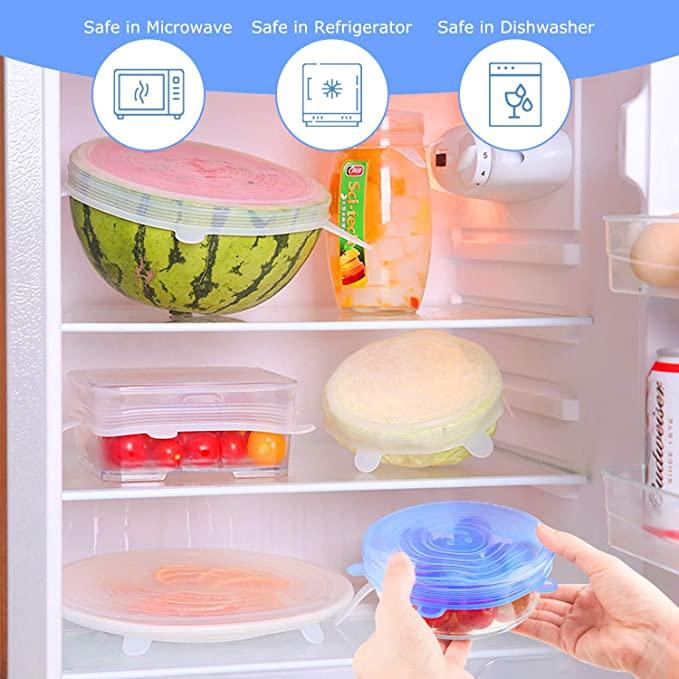Ideal for various shapes of bowls, containers, cups and fruits, these reusable silicone lids feature air-tight seal and are leak-proof.