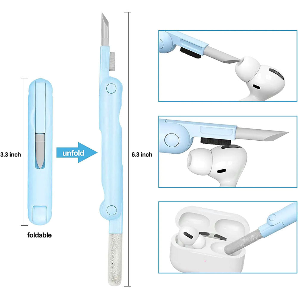 【Foldable Double-Head-Design Cleaning Pen】Detachable double head design does its job well.The silicone nib can remove crevice stains and stubborn residues, the small fine-bristle brush is used to clean the dust in the mesh or small holes without damaging the sound outlet, and the flocked sponge can easily clean the Airpod charging case.