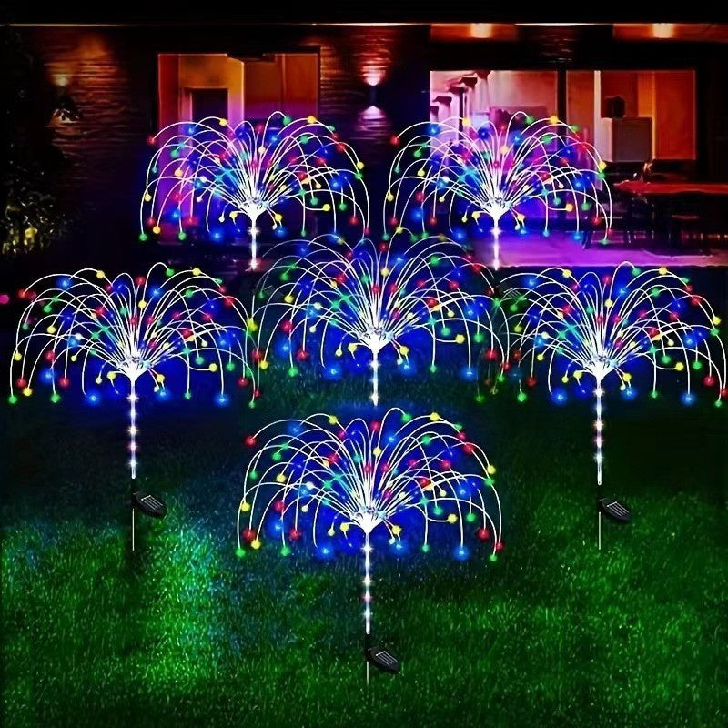 Multi-Color Solar Lights: Brighten your outdoor space with multi-color solar LED fireworks lights. 8-mode solar LED fireworks lights.