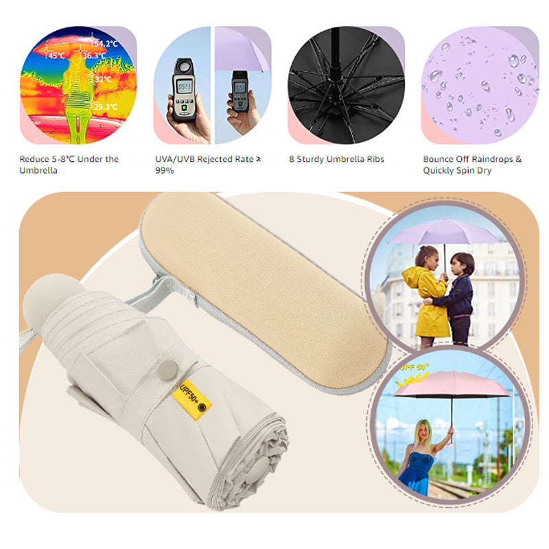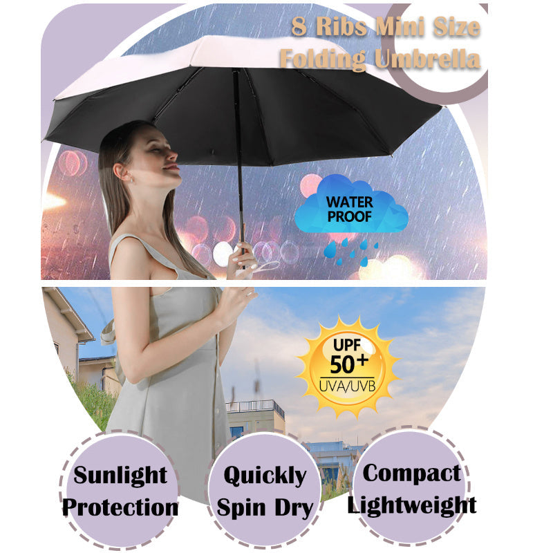 Ultra-Compact and Lightweight: Measuring only 7 inches in length and weighing 10 oz/280g, this mini umbrella fits easily into purses, handbags, totes, and even pockets. A perfect travel companion for you.