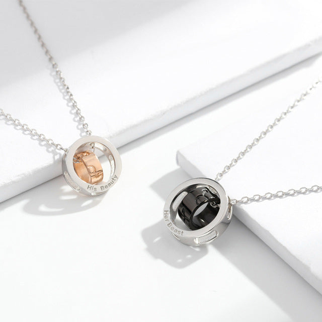 Unique design double ring with His Beauty and Her Beast, shiny, dainty and romanty.