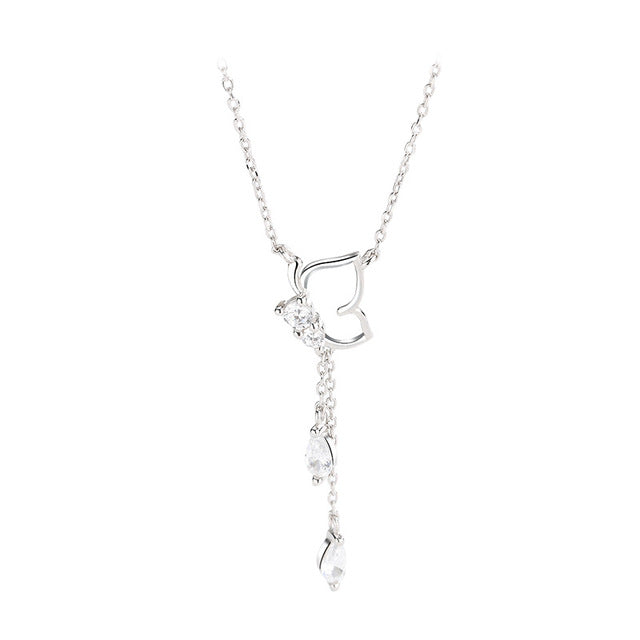 Unique Y shape butterfly with cubic zircon gemstone design pendant, shiny, dainty and elegant.