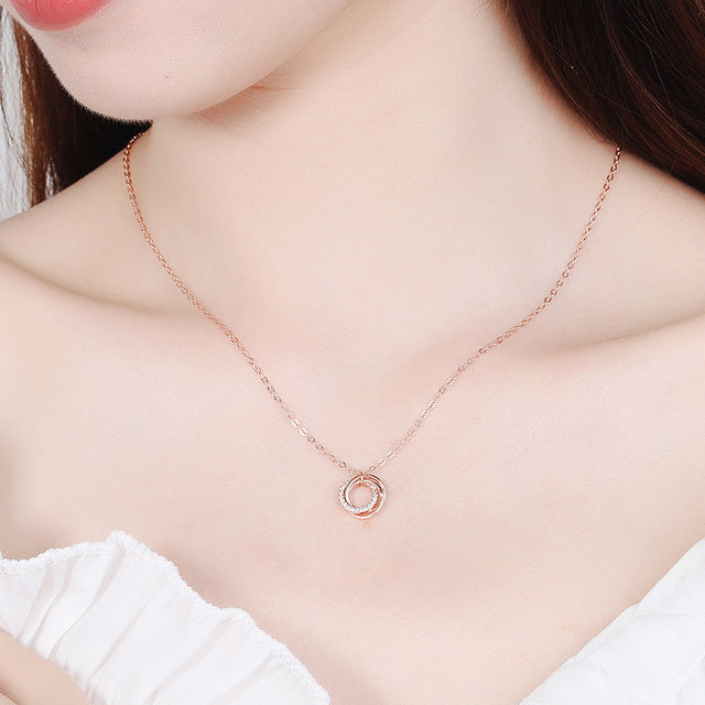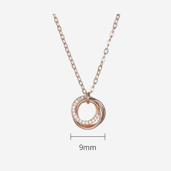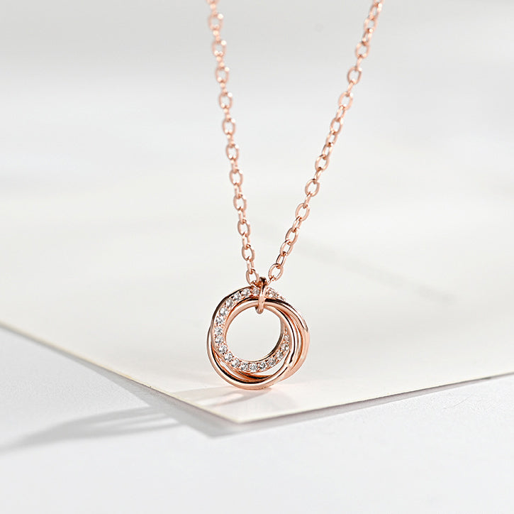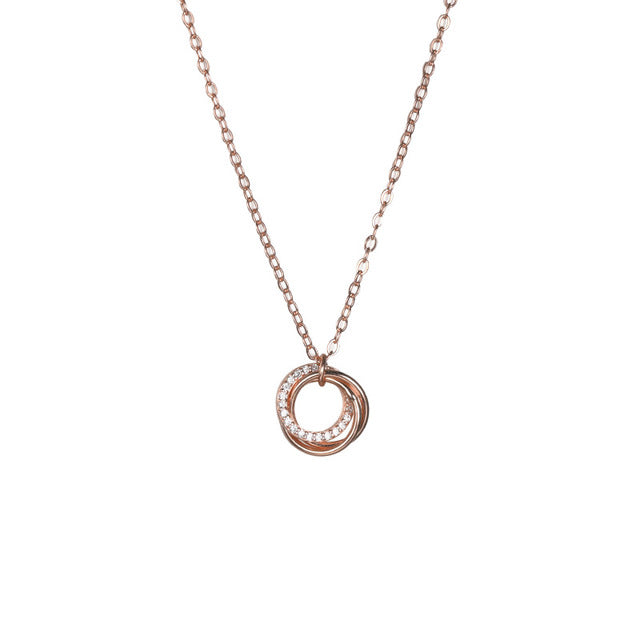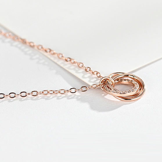 Unique rhinestone 3 rings forever love design pendant, shiny, dainty and elegant.