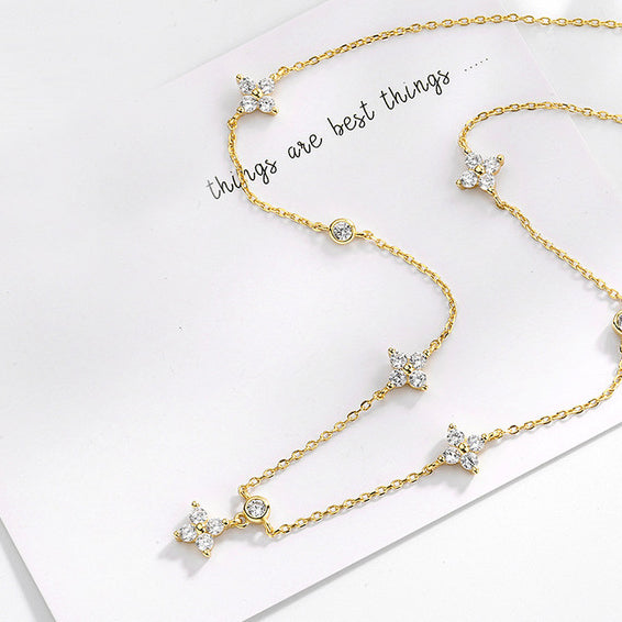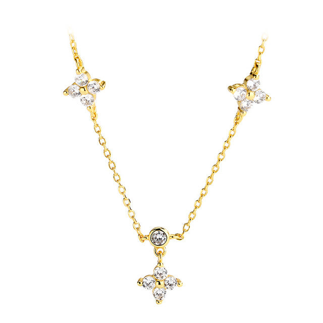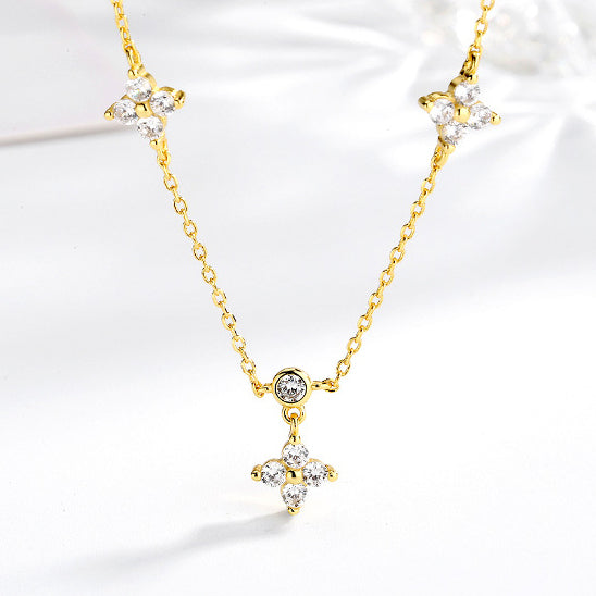 Unique rhinestone four leaf clover flower design pendant, shiny, dainty and elegant.