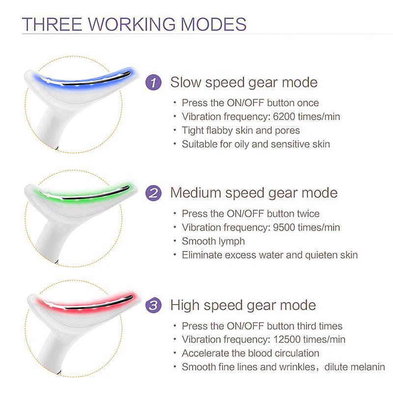 First to market anti-aging neck & face device based on new Intelligent Micro vibration, Cool/Heat, and LED Light Therapy. This combination provides the most powerful and effective neck and face skincare and repair therapy in the market.