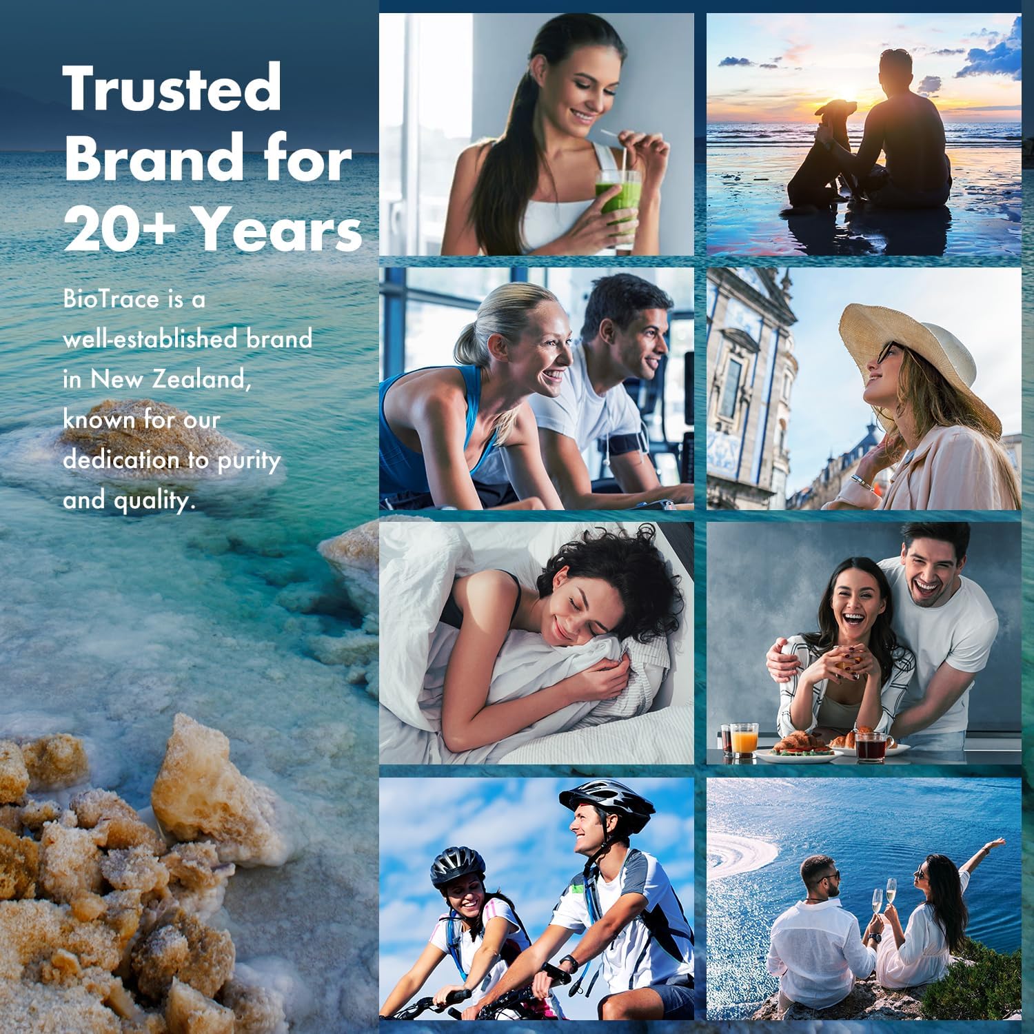 Superior Source and Trusted Legacy: BioTrace's Trace Mineral Drops are sourced from the world-renowned Dead Sea, known for its unparalleled mineral composition. This superior sourcing sets us apart from other CMD who rely on Salt Lake. Coupled with our 25-year legacy as a trusted brand in New Zealand, BioTrace represents both superior quality and reliability.