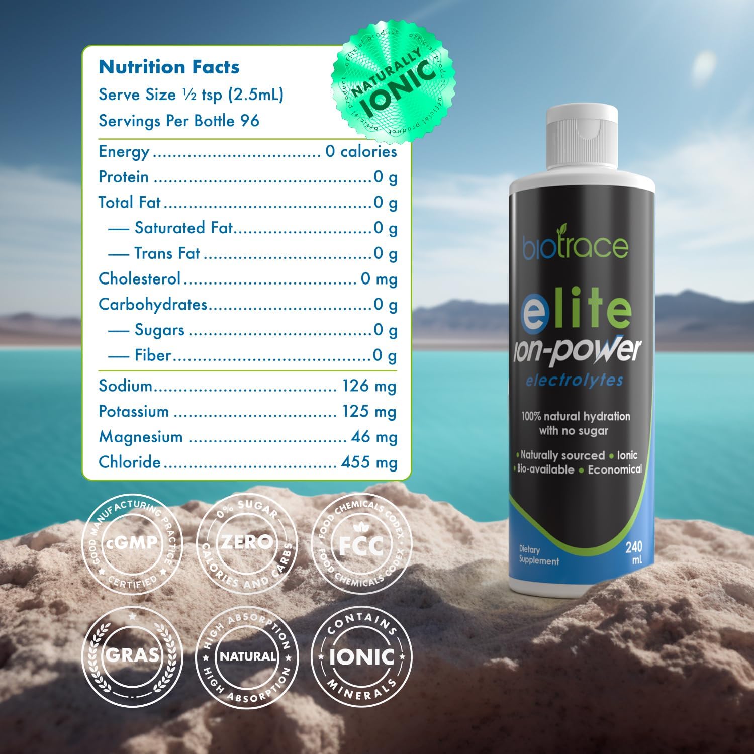 ION-POWER FASTING REHYDRATION: Unleash the power of ions with BioTrace Elite. Our electrolyte drops provide fast, effective rehydration, perfect for those practicing fasting, athletes, or anyone requiring a quick boost in hydration and energy levels.