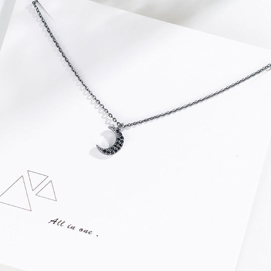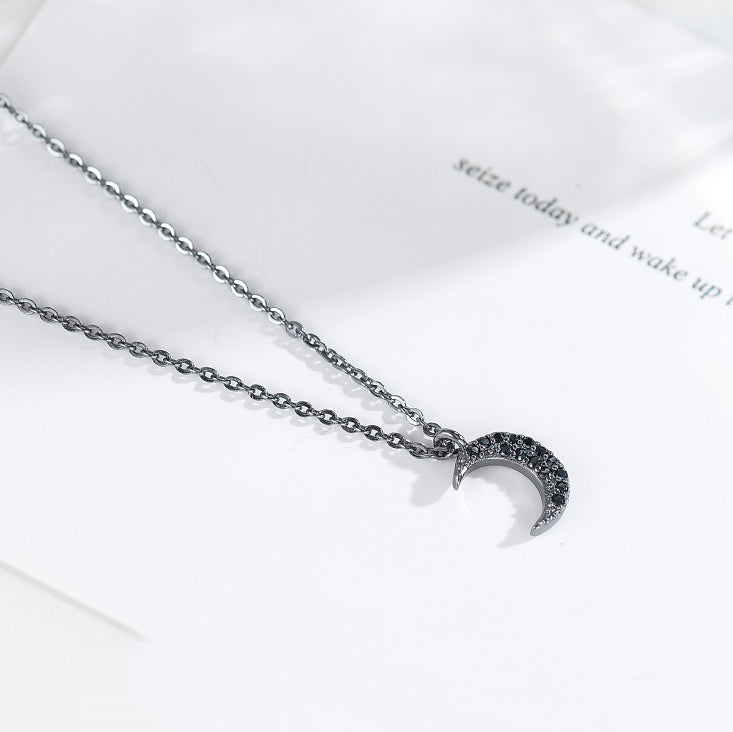 Unique black rhinestone half moon design pendant, shiny, dainty and elegant.