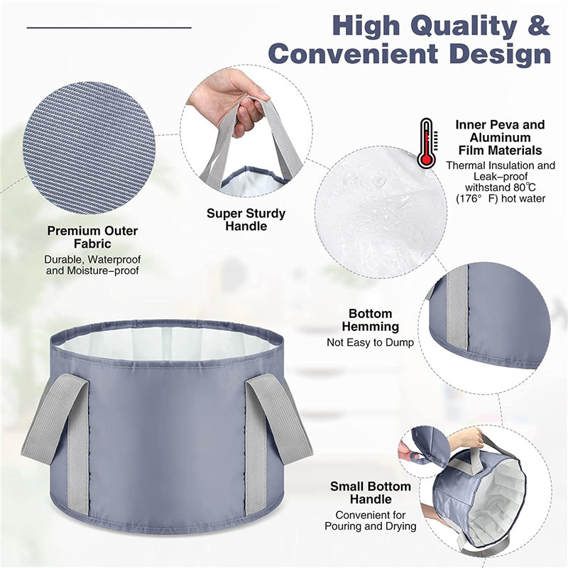 Versatile Use: Our foot soaker bags are versatile and can be used as camping buckets to wash dishes, drag water, or do laundry, foot soaker tub bags are perfect for camping, picnics, hiking, boating, or other outdoor activities.