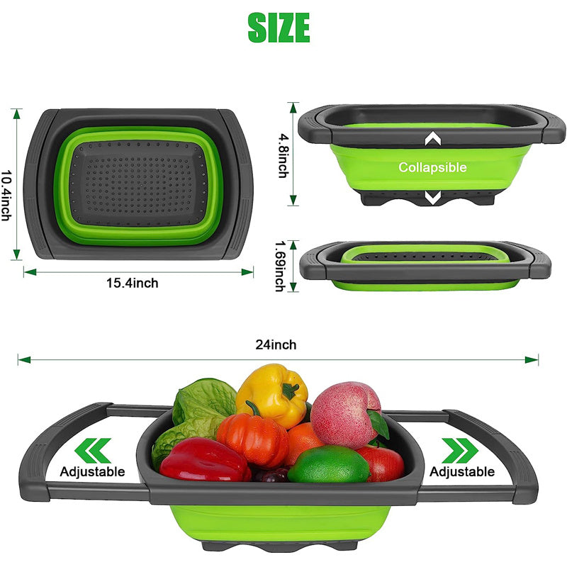 Multi Use Colander: The extendable Strainers can be. used to wash vegetables, fruits and drain the water. It also can be used as a container to place items and dry tableware.