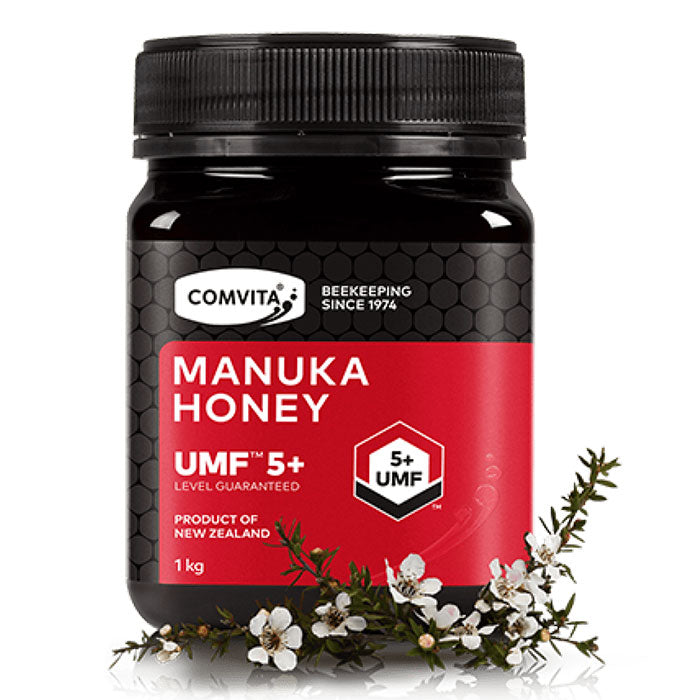 Comvita UMF 5+ Manuka Honey is produced in New Zealand and contains unique plant phenols. With its unique properties and distinctive flavour, Manuka Honey, made from the nectar of the Manuka bush (Leptospermum scoparium) has become one of the world’s most researched and adored honeys.