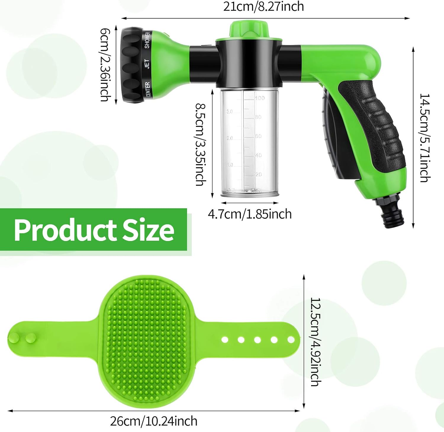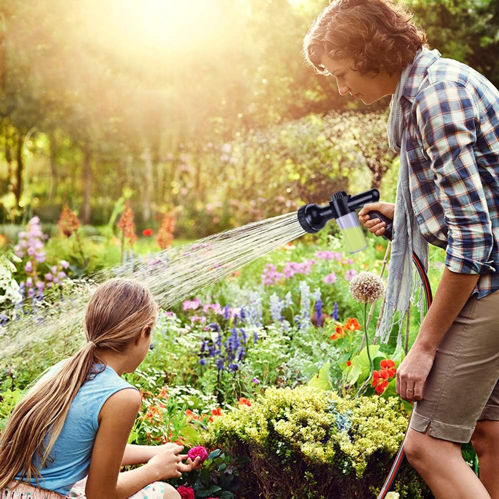 HIGH PRESSURE HOSE NOZZLE: Our dispenser has 8 spray patters and a soap dispenser. High pressure design technology can concentrate water pressure at a point, spray distance up to 6-10 meters. Best for Watering Plants, Lawn, Patio, and Washing Car, Showering Pets.