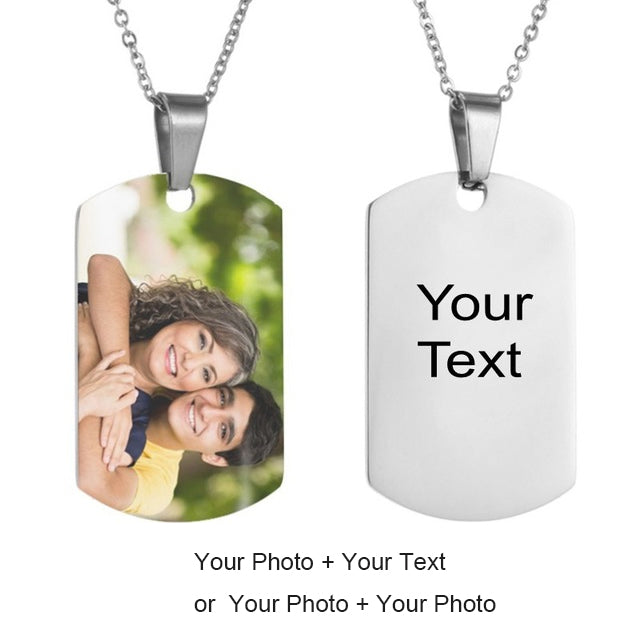 Custom Name Double Side Color Photo Tag Necklace Personalized Nameplate Silver Choker For Women Men Customized Letter Jewelry New
