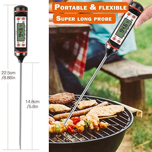 Long Stainless Steel Probe -The 5.75 inch long stainless steel probe keeps you from burning your hands while measuring the temperature.